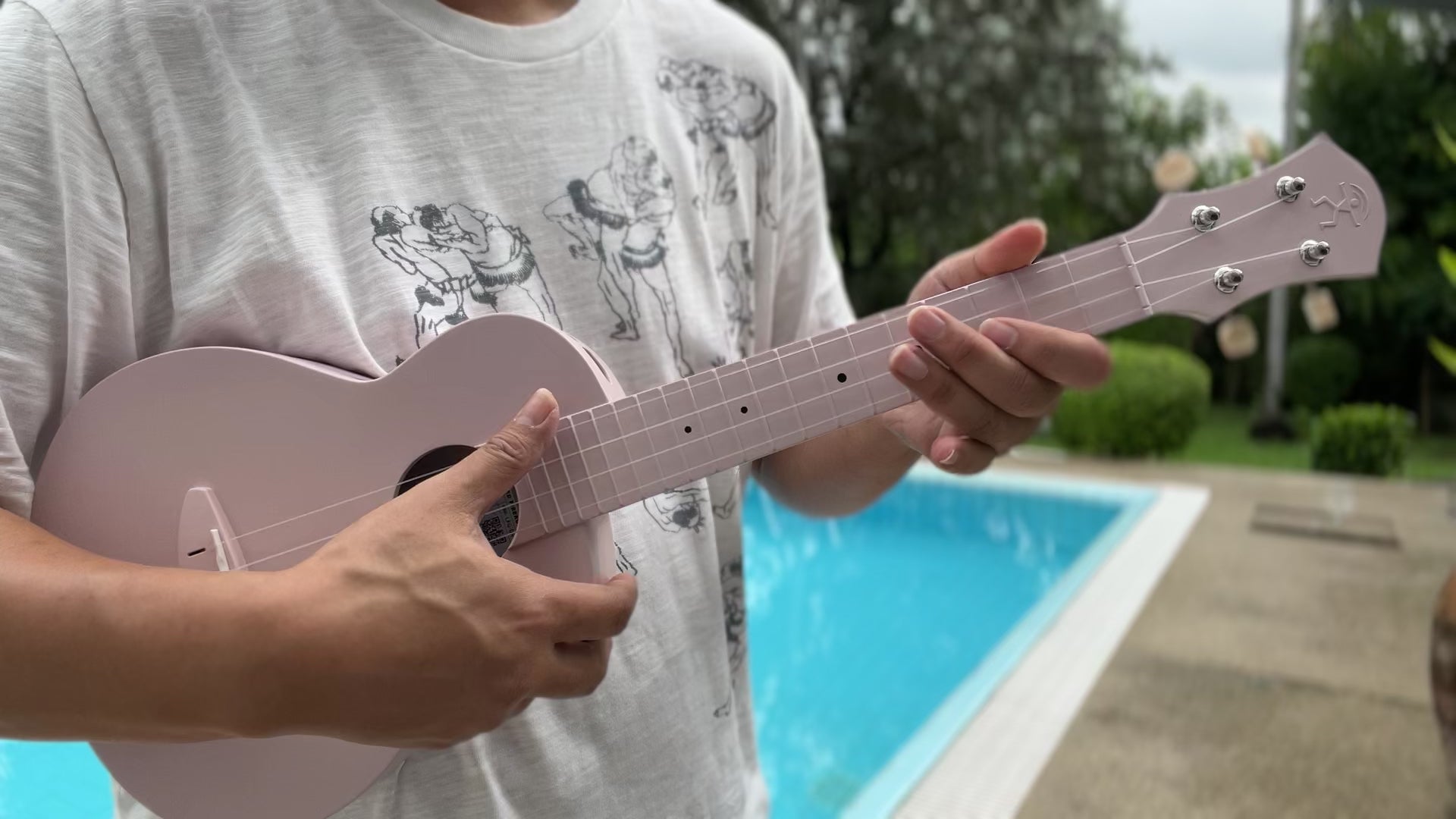 ตัวนี้สสี Dusty Rose ออกชมพูตุ่น ๆ สวยแบบแนว ๆ มาพร้อมกระเป๋าเก๋ ๆ และะสายหิ้วที่เป็นทั้งสายหิ้วกระเป๋า และ สายสะพายเวลาเล่น ที่ติดตั้งได้ง่าย ๆ ที่ตัวอูคูเลเล่เลย ดีไซน์เขาดีจริง ๆ