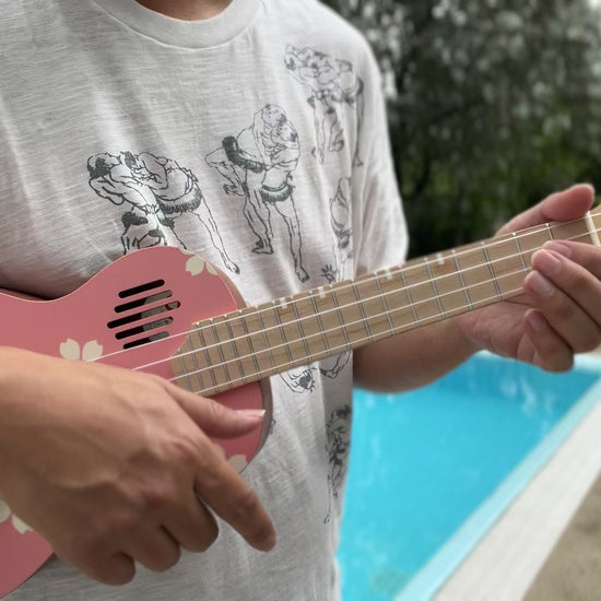 ถ้าชอบลาน จัดเลยครับ รุ่นนี้เสียงเข้าท่า เล่นดี มีสกรีนลายซากุระะ บนสีชมพู ที่ไม้หน้า solid spruce แจ่มไปเลย